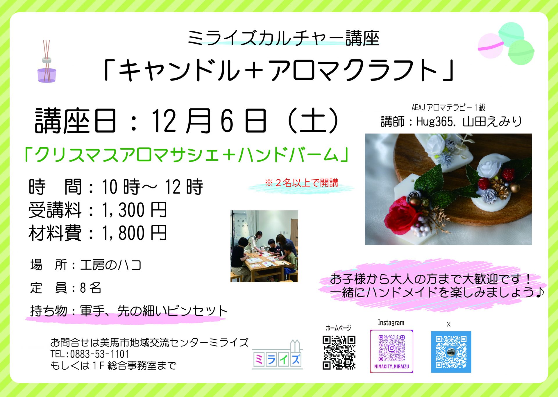 12月6日ミライズカルチャー講座「キャンドル+アロマクラフト」