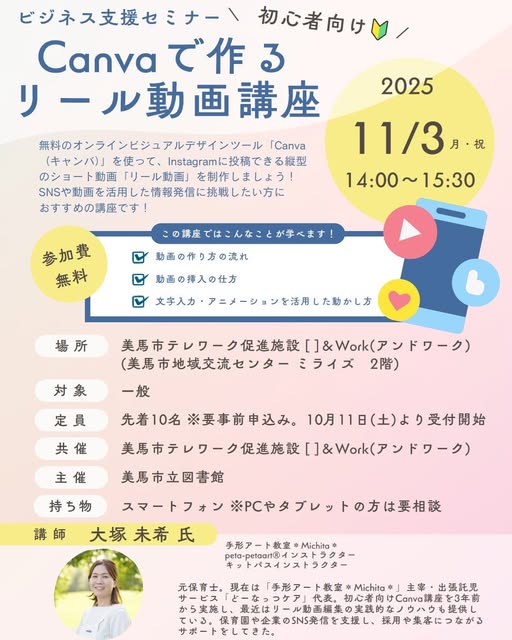 持ち物:スマートフォン ※PCやタブレットの方は要相談