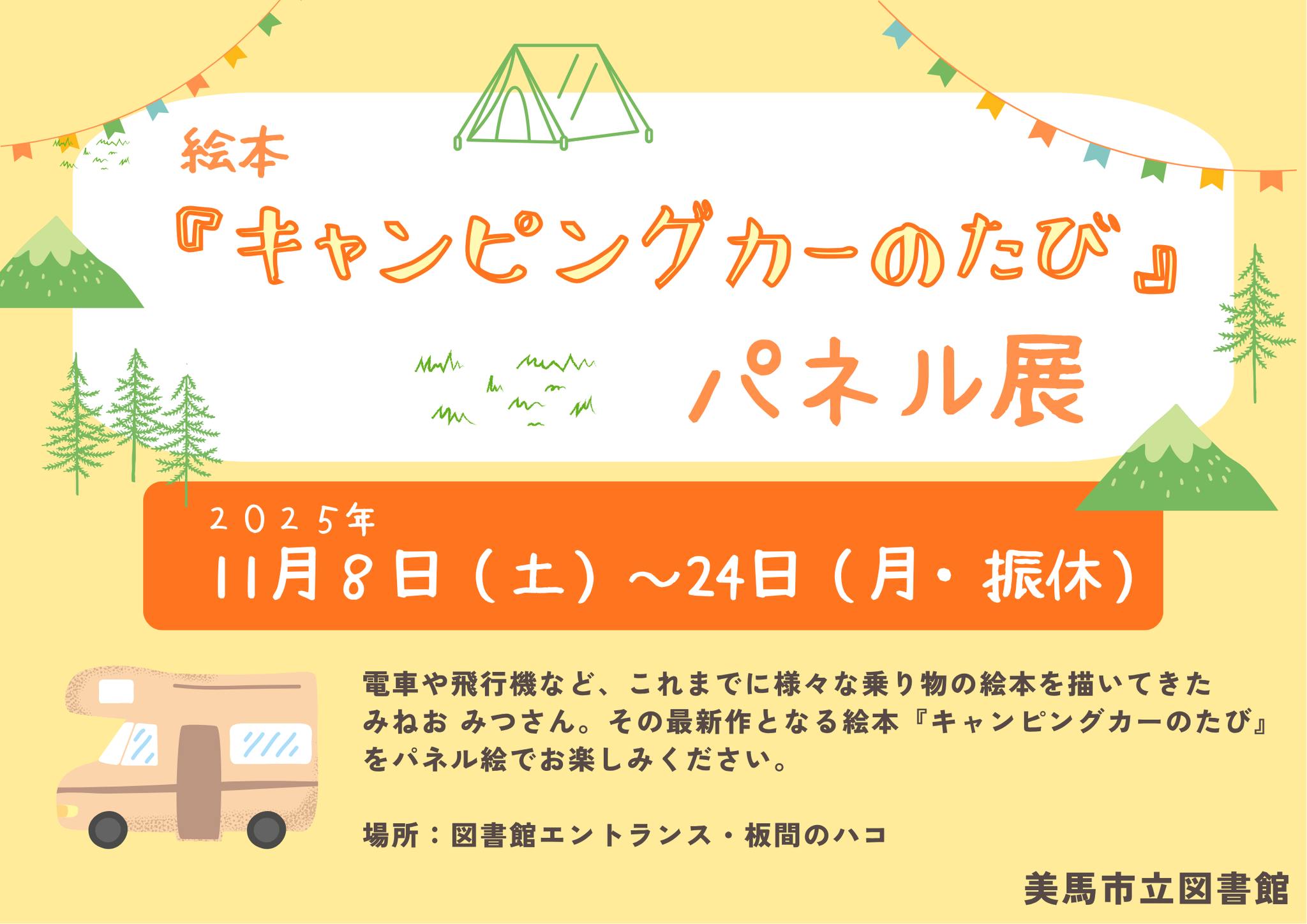 その最新作となる絵本『キャンピングカーのたび』をパネル絵でお楽しみください!